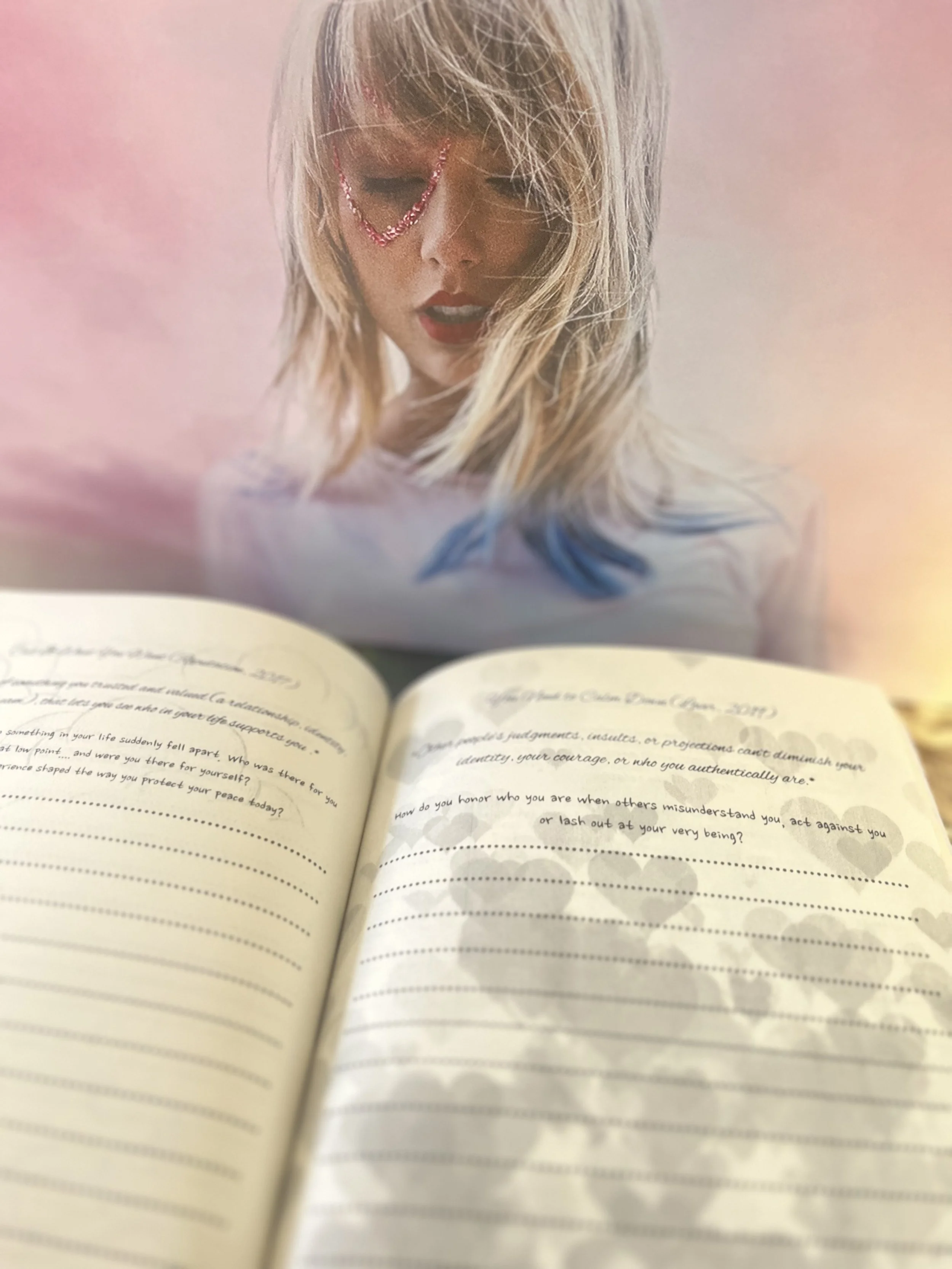 the writer a chance to come home to themselves before they dive into why “Love Story” or “Tolerate It” resonates with them. Because the lyrics are so varied in theme, people will find themselves unraveling details about their childhood, past hurts, and future hopes. The writer can then share their discoveries with a therapist or mentor.